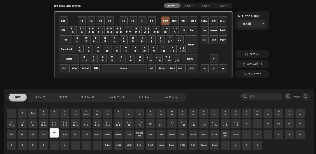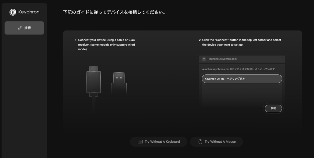 昔はソフトのインストールが必要でしたが、今はKeychron公式がWebアプリを提供してくれています。