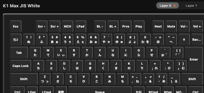 - Macモードの人: LAYER 0 (表) と LAYER 1 (裏) を使います。