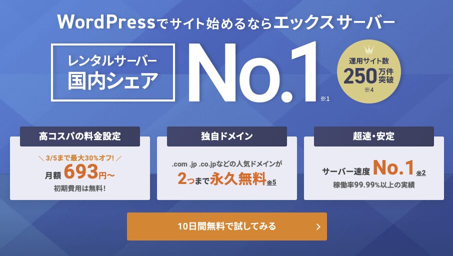 もしあなたが、「ブログで収益化も狙いたい」と思ったら、迷わず「Xserver レンタルサーバー」を検討してください。ドメイン代がタダになる分、実質の運用コストはさらに下がります。